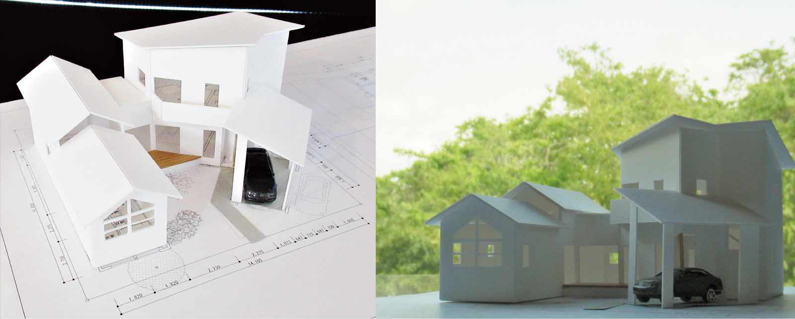 そのために、図面・スケッチ・スタディモデルなどさまざまな方法で、クルマと住まいを有機的につなぐガレージを計画・検討・修正を重ねてまとめています。