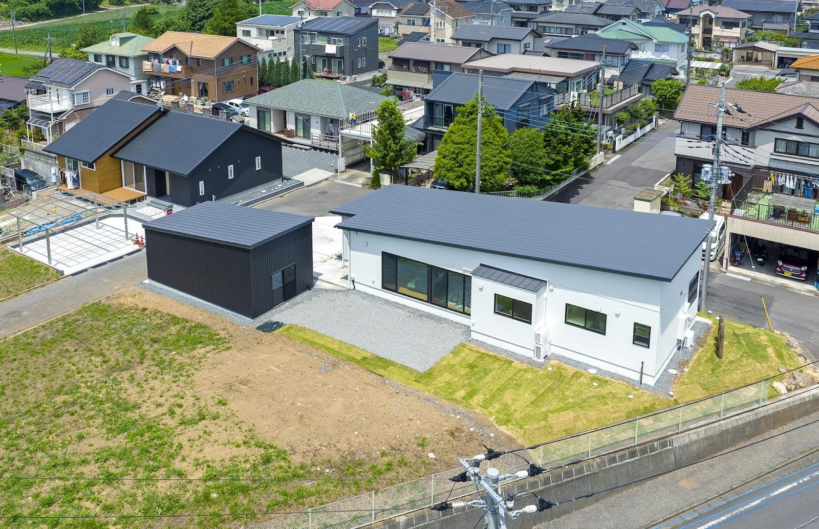 敷地が広く、建蔽率、容積率にゆとりがあり、お客様から、シャッターをつけた