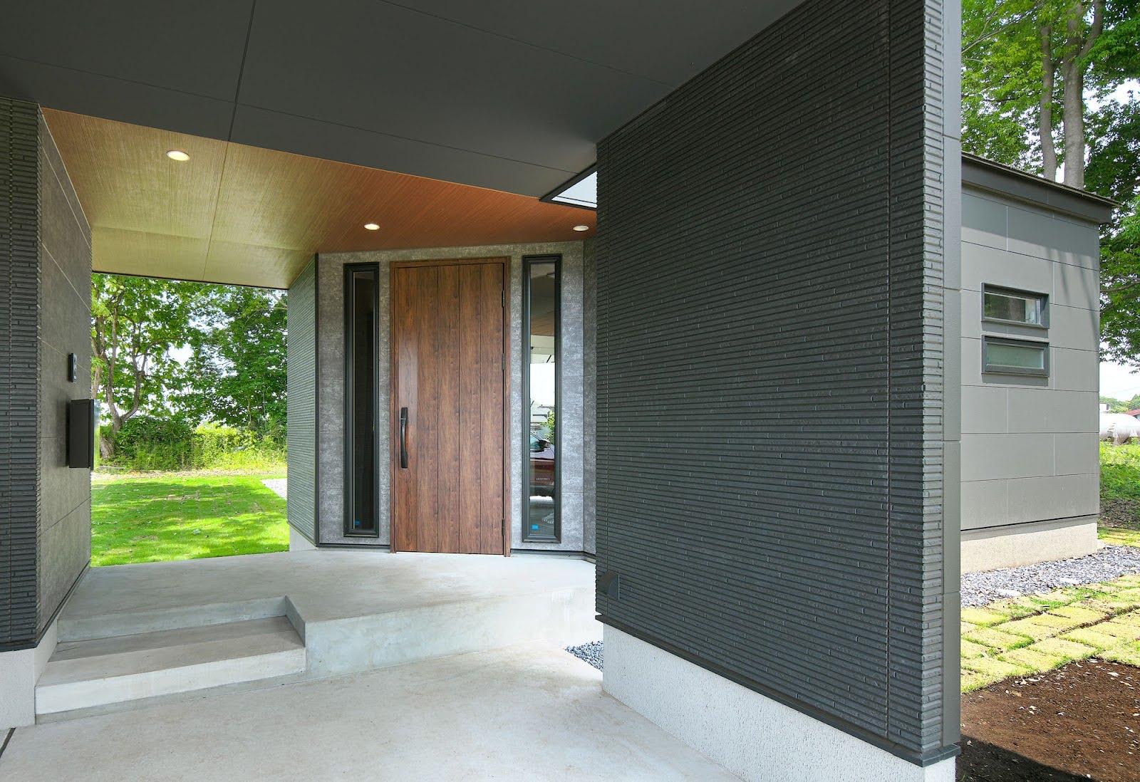 2-3.陰影の美しさが印象的なアプローチ兼用ガレージ