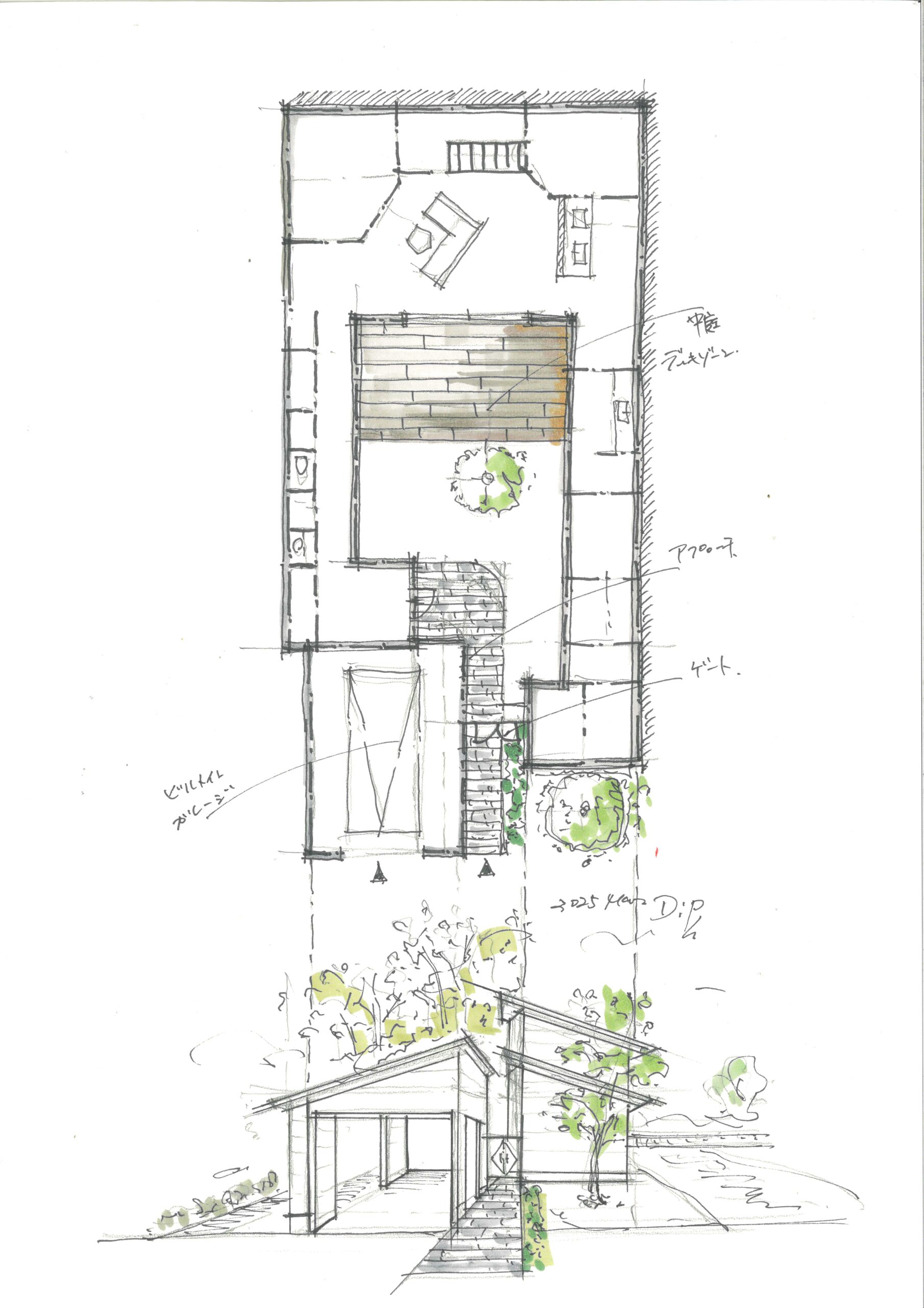 スキップフロアのある平屋