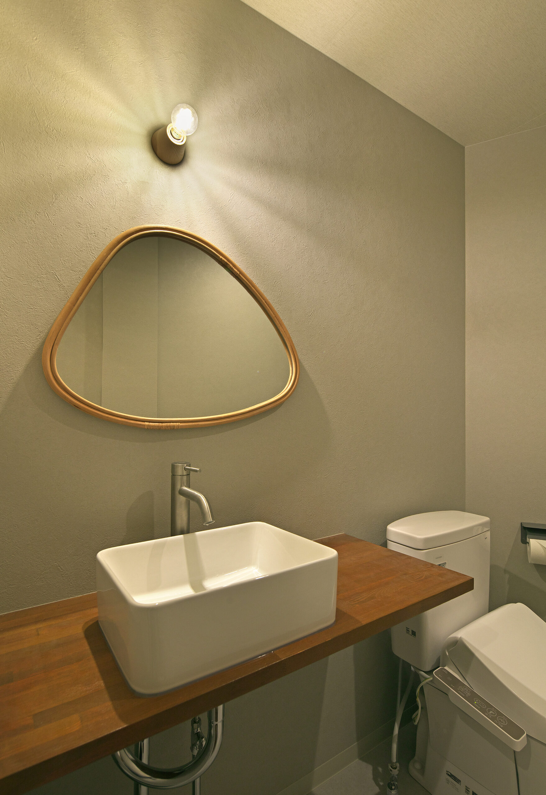 木の温度を感じるテーブルと、素朴な素材の心地よさ。